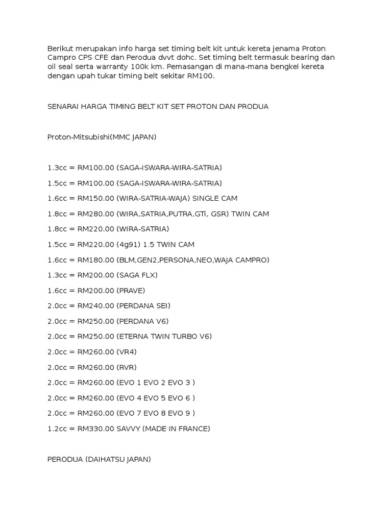 Kos tukar timing belt. Waja timing belt gates rm125 full warranty 100 000km timing belt dayco europe rm160 100 000km bosch timing belt kiot set rm105 complete set bosch timing belt kit set rm105 complete set add air con fan belt dayco made in europe rm44 waja 1 6 top overhaul set original proton rm365 many fakes out there. Sy tukar timing belt kancil660 dgn upah rm175 bush timing cover rm28 bush timing s 5biji rm40 crankshaft washer rm20 ok x harga tu mcm mahal je johari says. Timing belt 60 000km untuk kereta proton wira saga.