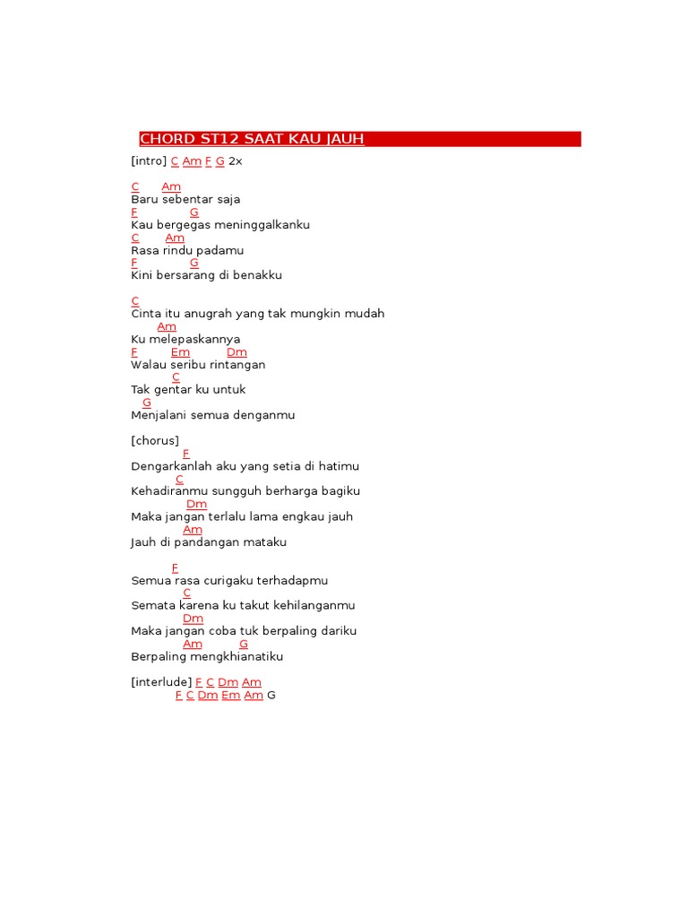 St12 Saat Kau Jauh Intro C Am F G Chord Lagu Indonesia Facebook