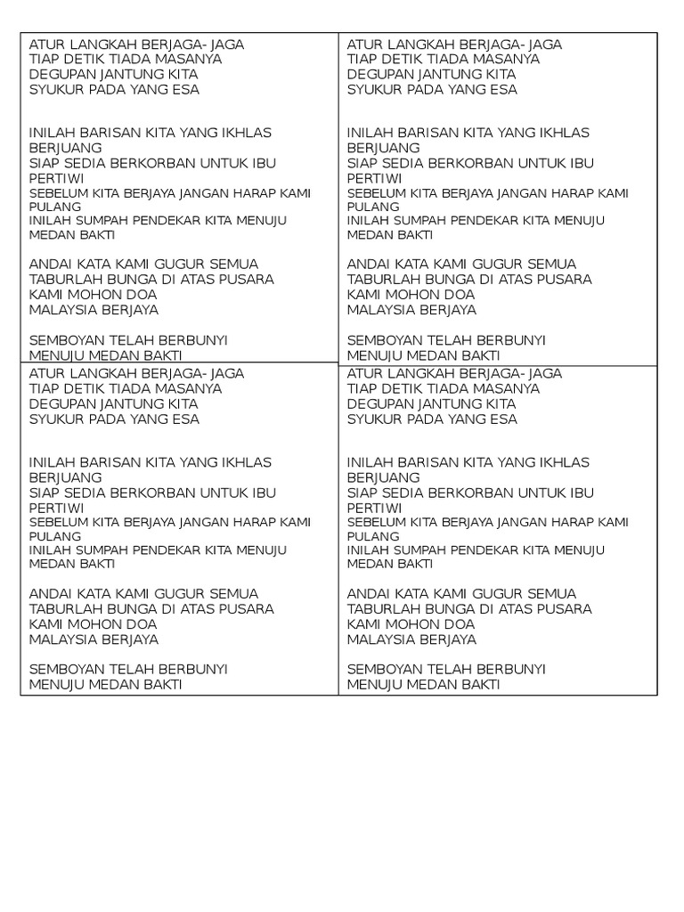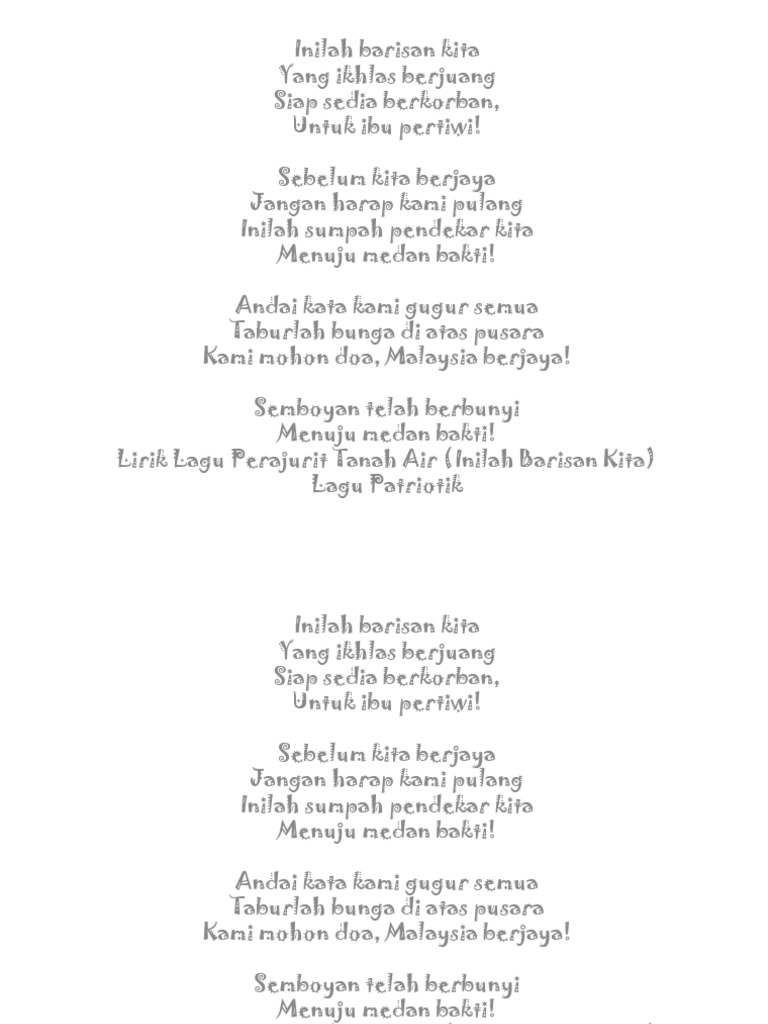 Lirik Lagu Perajurit Tanah Air Tahun 6c