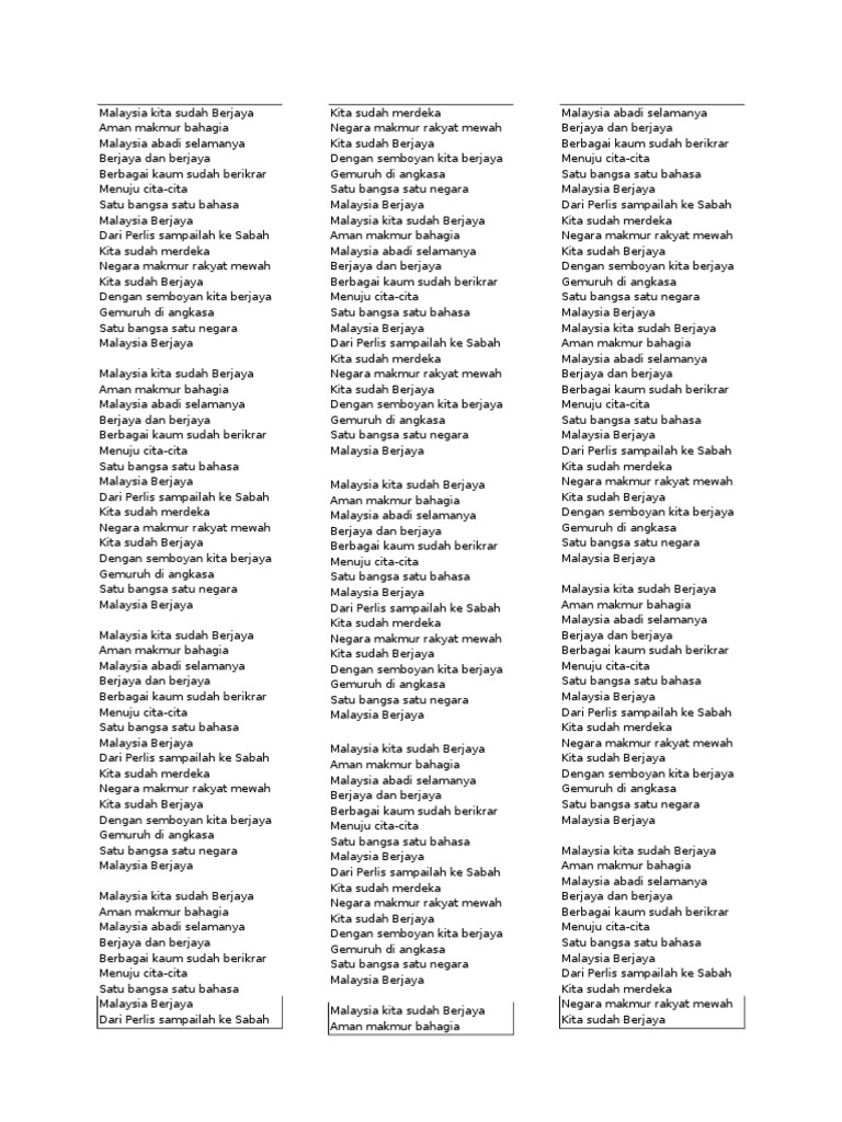 Lirik Lagu Malaysia Berjaya Docx