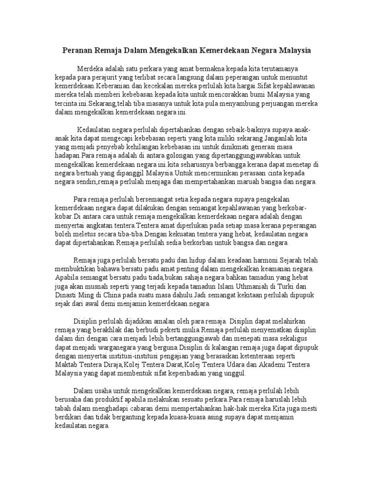 Peranan Remaja Dalam Mengekalkan Kemerdekaan Negara Malaysia
