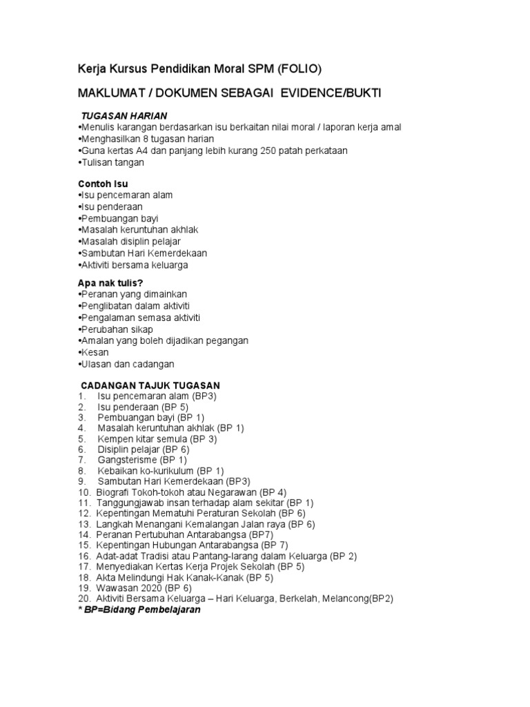 62551536 Kerja Kursus Pendidikan Moral Spm Pdf Kerja Kursus Pendidikan Moral Spm Folio Maklumat Dokumen Sebagai Evidence Bukti Tugasan Harian Course Hero