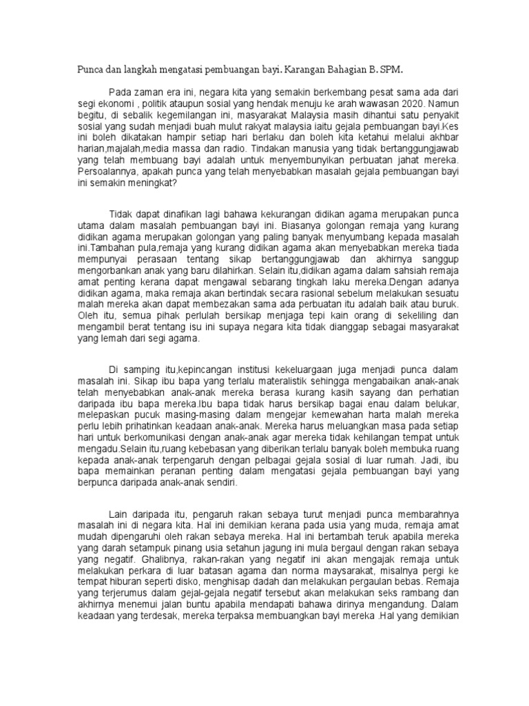 Fokus Karangan Spm 2010 Isu Pembuangan Bayi
