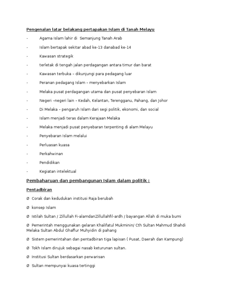 Pengenalan Latar Belakang Pertapakan Islam Di Tanah Melayu Docx