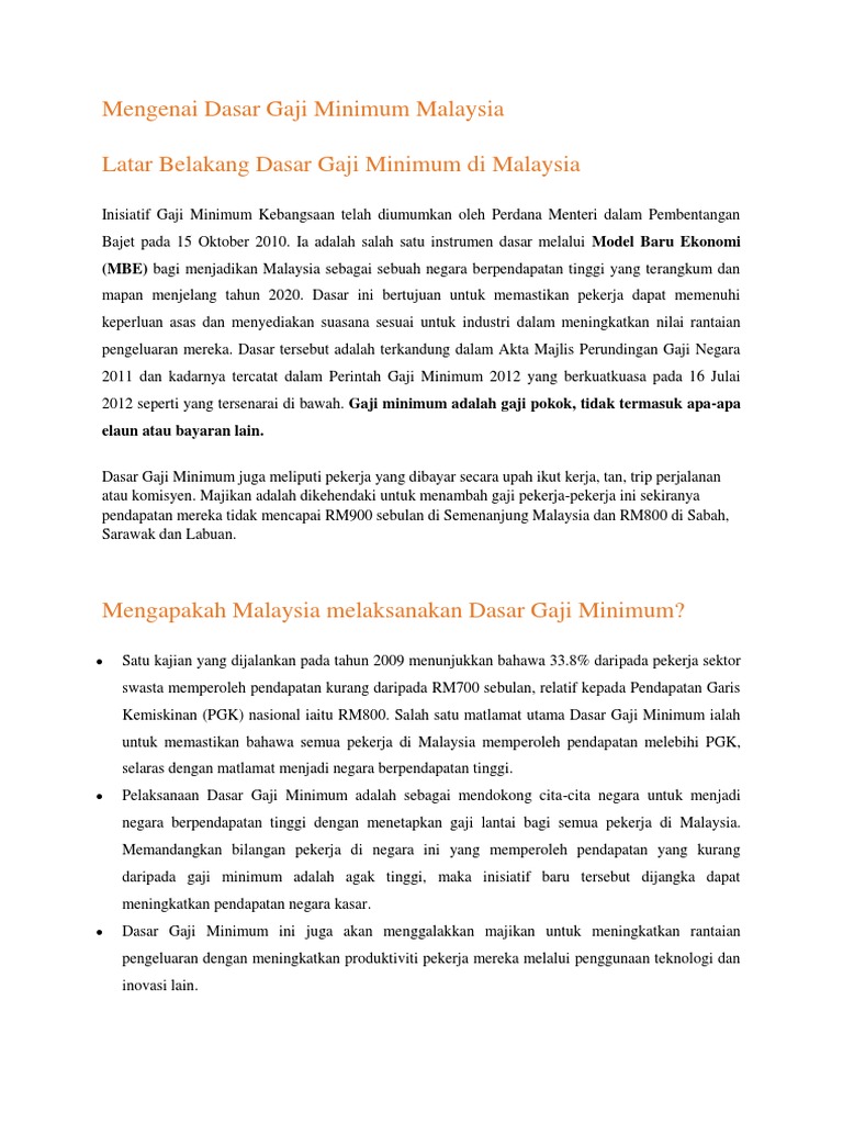 Mengenai Dasar Gaji Minimum Malaysia