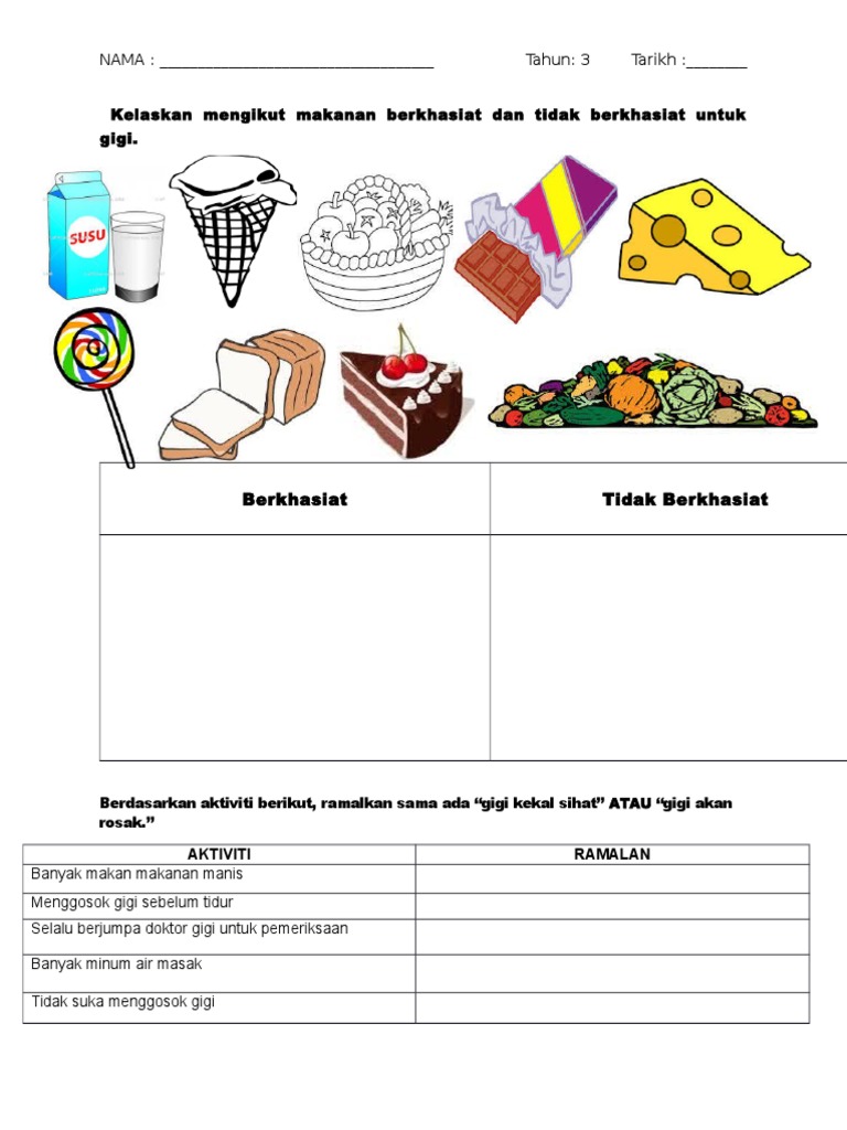 Prasekolah Lembaran Kerja Makanan Berkhasiat Dan Tidak Berkhasiat