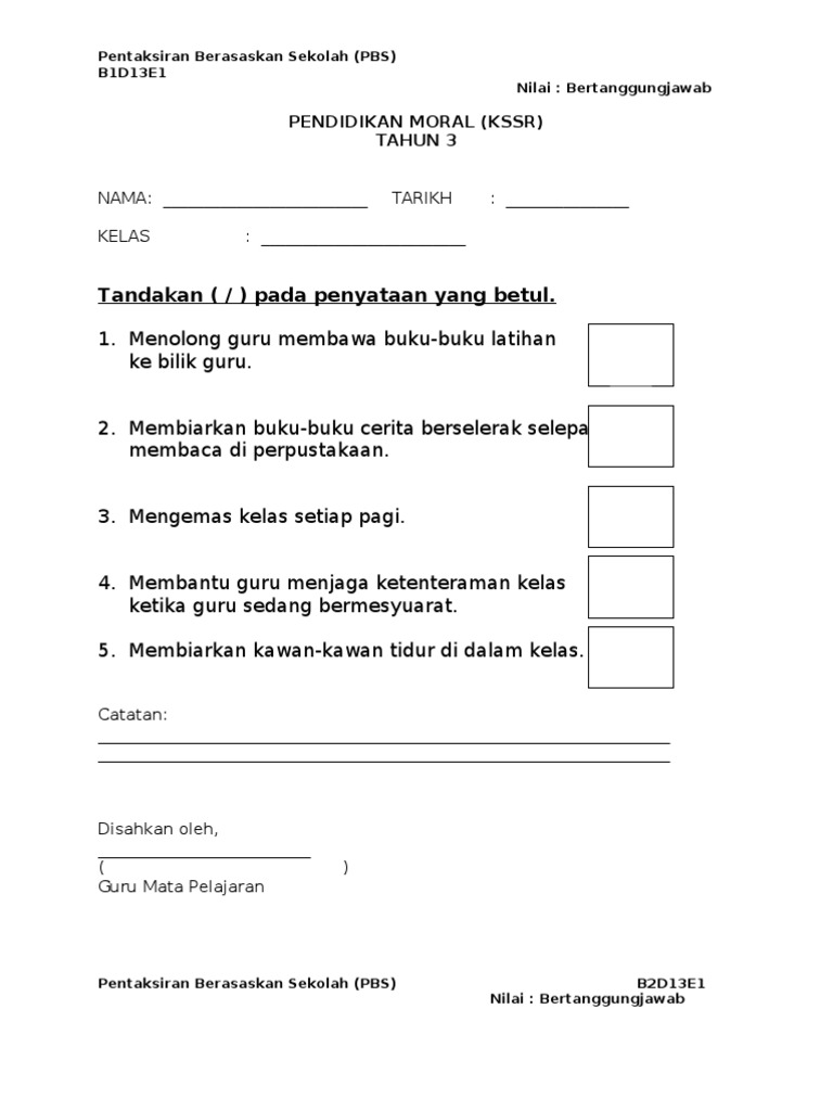 Contoh Soalan Pendidikan Moral Tahun 1 Kssr Kecemasan C