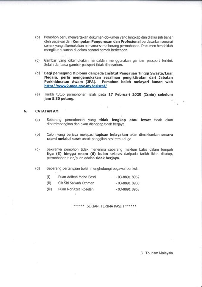 Jawatan Kosong Lembaga Penggalakan Pelancongan Malaysia Mtpb Tarikh Tutup 4 Februari 2020