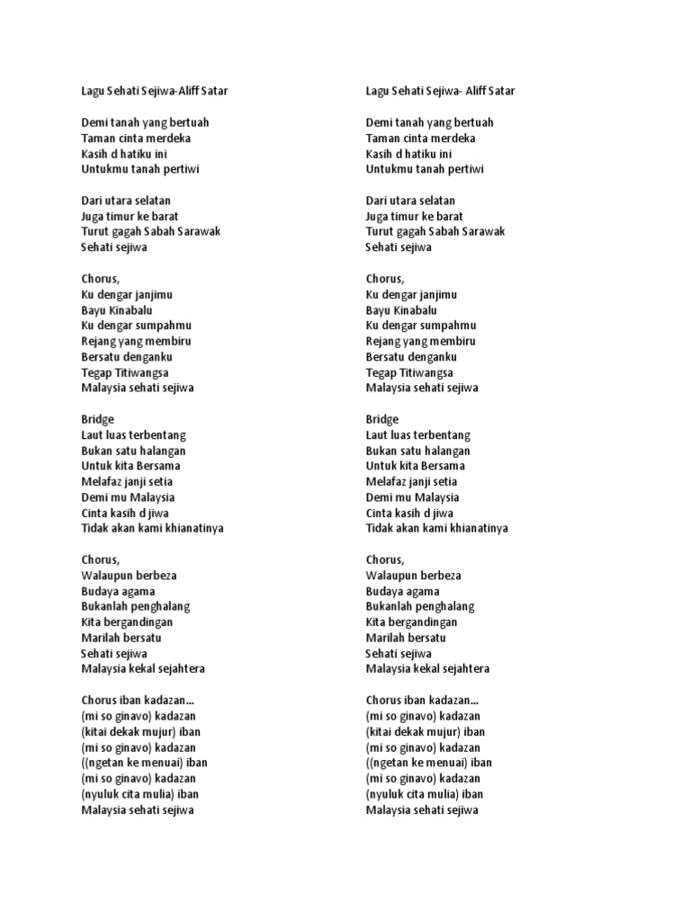 Lirik Lagu Hari Kebangsaan 2015 Sehati Sejiwa Pdf Document