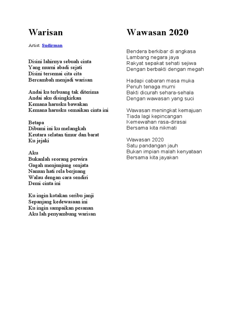 Lirik lagu wawasan 2020. Idea ini telah dicetuskan oleh tun dr. Lirik lagu patriotik wawasan 2020. Lirik lagu bahasa melayu.
