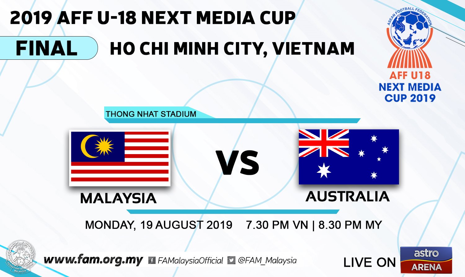 Malaysia melangkah ke final setelah berhasil mengubur mimpi timnas u18 dengan skor 3 4. Perlawanan hebat ini akan berlangsung pada 19 ogos 2019 hari isnin mulai jam 8 30 malam waktu malaysia di stadium thong nhat ho chi minh untuk aksi final kejohanan aff b 18 2019. Pertandingan malaysia vs australia ini digelar di stadion ho chi minh city vietnam.