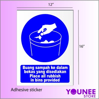 Idustrial Safety Sign Buang Sampah Ke Dalam Tong Sampah Yang Disediakan Place All Rubbish In Bins Provided Shopee Malaysia