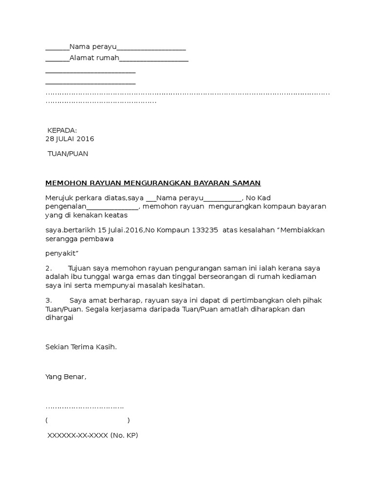 Surat Rayuan Saman Sample Dan Format Eratuku