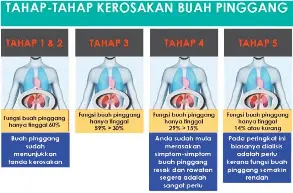 Jika ini terjadi pemindahan buah pinggang atau dialisis diperlukan untuk meneruskan hidup. Ketahui kisah bagaimana pesakit buah pinggang rosak tahap 4 menjadi tahap 2 transplant dibatalkan tahap 5 pula ialah tahap dimana buah pinggang telah gagal. Melakukan ujian ini merupakan satu langkah yang drastik dalam memilih cara mengatasi sakit buah pinggang ini.