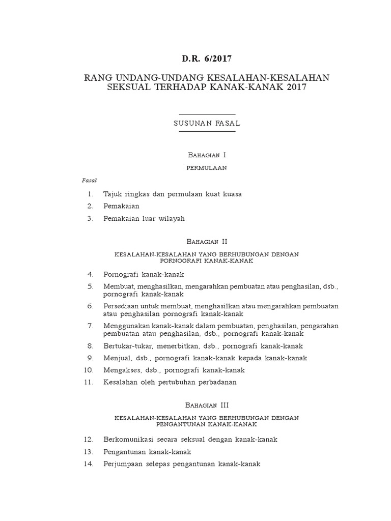 Kesalahan Kesalahan Seksual Terhadap Kanak Kanak 1 D R 6 2017 Rang Undang Undang Kesalahan Kesalahan Seksual Terhadap Kanak Kanak Pdf Free Download
