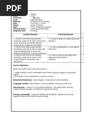 Class enrolment level date day time theme topic focused skill s. Malaysian legends from kssr english year 5 textbook. Nevertheless everything went smooth flowing albeit topsy turvy state of affairs.