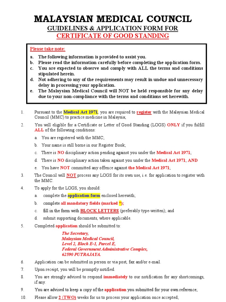Malaysian medical council guidelines. Guidelines for full registration with the mmc for malaysian citizens. Form ethical codes code of professional conduct good medical practice credentialing a read more. Email protected you may also view the following mma web page for more information.