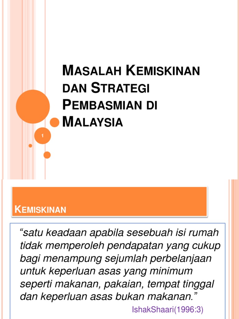 Perbincangan meliputi konsep kemiskinan kedudukan kemiskinan mengikut kaum kawasan dan negeri faktor faktor yang menyebabkan kemiskinan kesan daripada kemiskinan terhadap kehidupan dan langkah langkah yang dibuat oleh kerajaan untuk mengatasi masalah kemiskinan. Masyarakat miskin indonesia mencapai 13 33 persen atau sebanyak 31 02 juta orang dari jumlah penduduk indonesia. Dari kadar rm980 yang telah diguna pakai sejak tahun 2005.