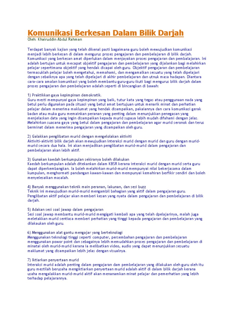 Masalah pengajaran dan pembelajaran dalam bilik darjah. Pengajaran dan pengurusan adalah penting dan saling berkait ia melibatkan perancangan guru dalam memastikan proses pengajaran dan pembelajaran yang berlaku dapat mencapai matlamat dan objektif yang ditetapkan peningkatan profesionalisme guru didalam bilik darjah dilihat dalam aspek kebolehan mencorak kualiti pengajaran kebolehan menyusun organisasi pembelajaran kebolehan mencorak iklim dalam. Peramal tersebut terhadap keselesaan pengajaran dan pembelajaran dalam bilik darjah dibentuk melalui persa maan regresi berikut. Pengurusan bilik darjah merupakan sesuatu konsep yang komprehensif untuk pelbagai aktiviti guru yang dirancang dengan tujuan memudahcarakan pengajaran dan pembelajaran dalam bilik darjah merangkumi tindakan disiplim rutin harian penyusunan tempat duduk dan memperuntukkan masa pelajaran.