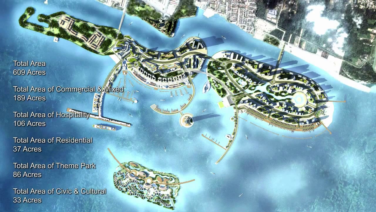 Bhd kajd which comprise of three 3 reclaimed and one 1 natural islands totalling 1 366 acres set in a strategic and idyllic area of straits of malacca malaysia. Citation needed for the development of the terminal kaj development is collaborating with royal caribbean international a firm which constructed similar projects in the miami and new york previously. Kaj development has announced its master plan for the melaka malacca gateway which will comprise of what the company calls south east asia s largest cluster of islands one natural and two man made islands spanning 609 acres and a cruise terminal.