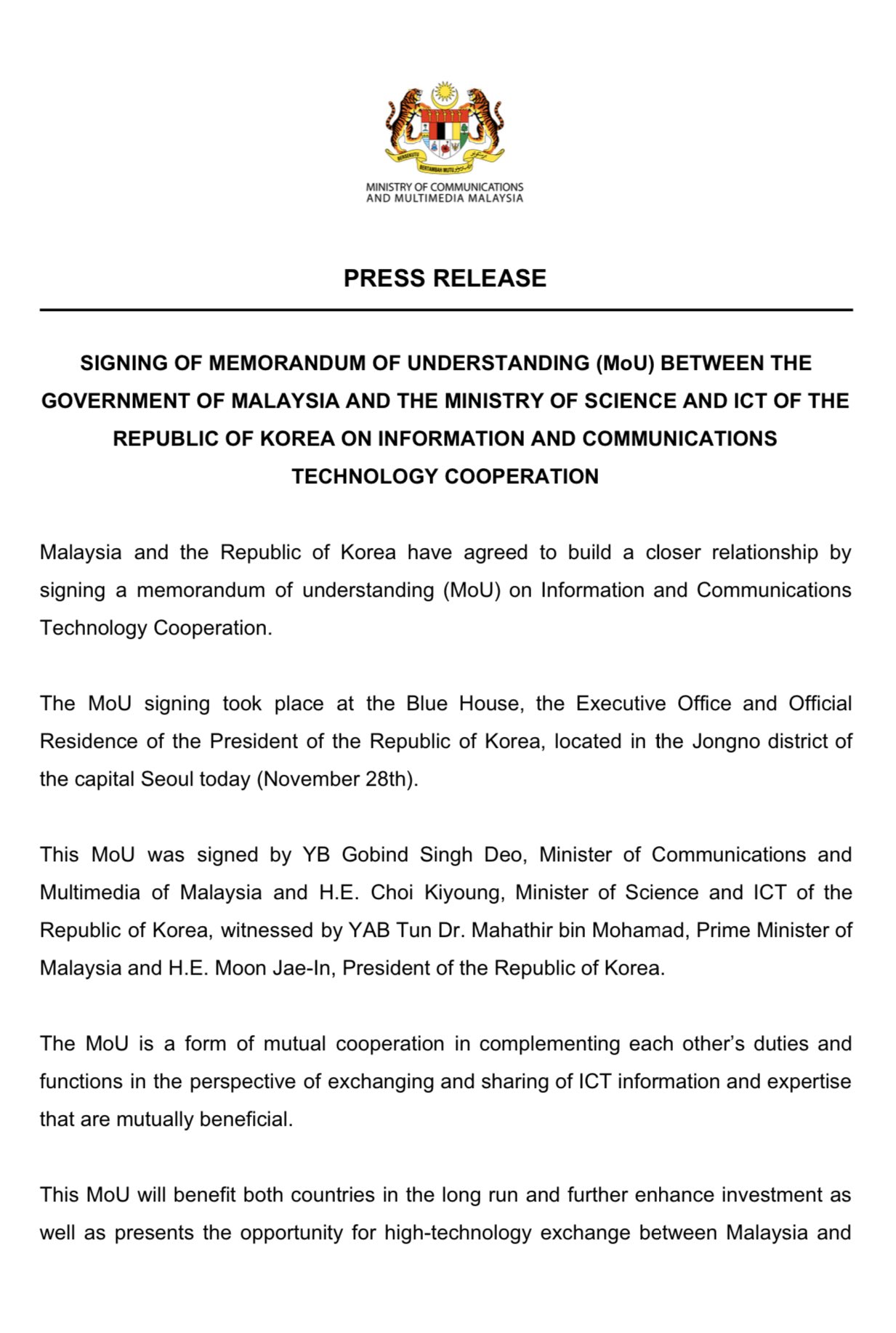 Memorandum Of Understanding Malaysia