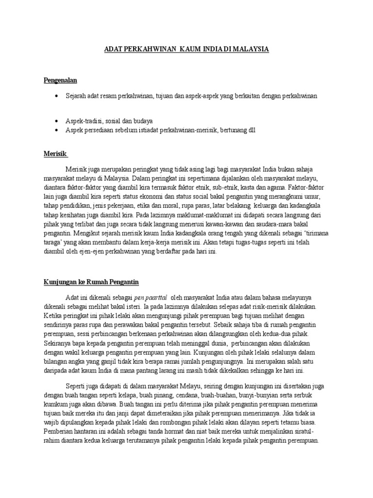 Pengajian Malaysia Adat Perkahwinan Masyarakat India Ke Arah Mewujudkan Masyarakat Majmuk Di Malaysia