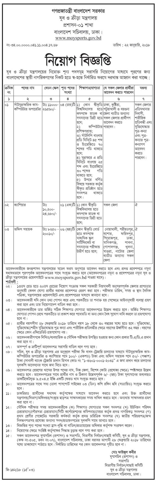 Ministry Of Youth And Sports Job Circular 2018 Bangladesh Education And Job Portal