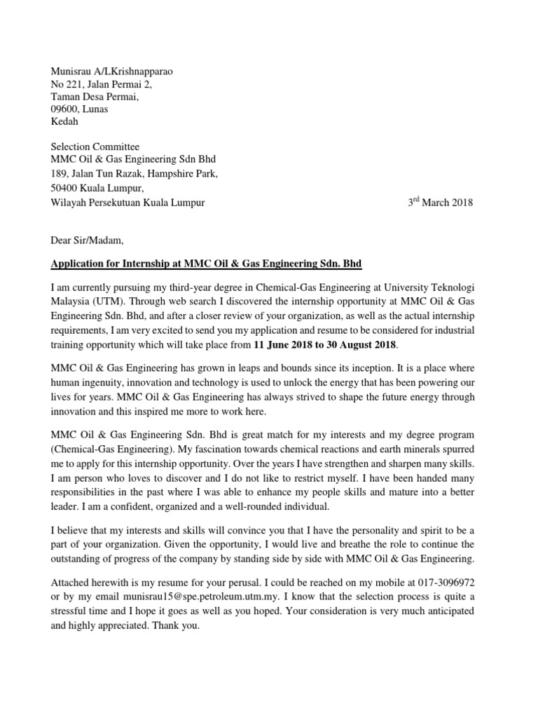 Mmc Oil Gas Engineering Cover Letter Engineering Technology