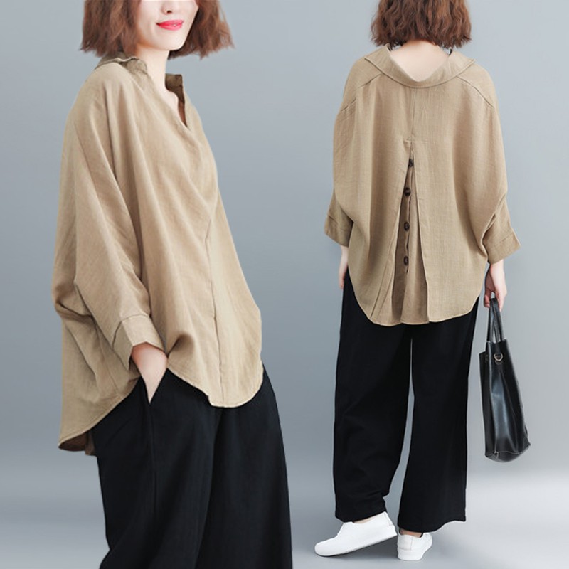 Atasan Big Size Adik Gemuk Ukuran Besar Katun Dan Linen Kemeja Wanita Longgar Wanita Gemuk Tipis Kem Shopee Indonesia