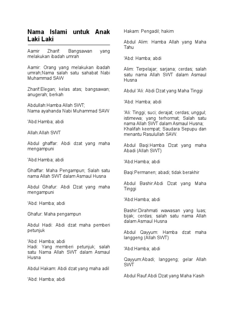 Doc Daftar Lengkap Nama Islam Untuk Anak Laki Laki Mia Adzar Academia Edu